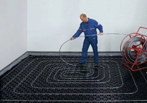 В некоторые фирменные комплекты водяных теплых полов входят специальные плиты с выступами (см. фото ниже), которые удерживают трубы.