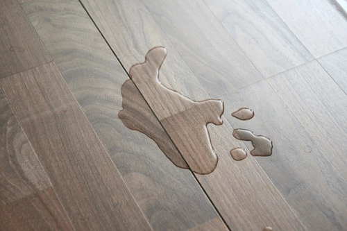 Это, пожалуй, самый существенный изъян дешевого ламината. В жилой квартире жидкость льется на пол всегда: проливаются чай, пиво, вода для полива растений, плохо отжимается тряпка при мытье поверхности и т.д. Источниками нежелательной влажности на ламинате могут быть домашние животные. Если защитное покрытие в большой степени способно предохранить лицевую грань ламинированой плиты от влаги, то стыки – поистине «ахиллесова пята» этого материала. Попавшая между панелей вода может привести к деформации (набуханию), растрескиванию и разрушению.