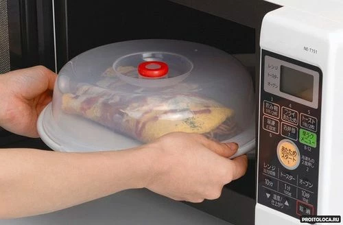 - использовать защитный колпак из специального пластика для разогревания пищи.