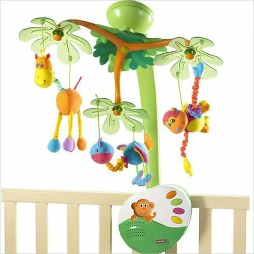 Мобили - подвески в кроватку с небольшими яркими игрушками. Часто производители снабжают их функциями вращения, проигрывания мелодий и подсветкой. Яркие движущиеся фигурки и мелодичные звуки привлекают внимание малыша и успокаивают его, позволяя маме хотя бы ненадолго отойти от кроватки. Эта развивающая игрушка входит в список лучших для самых маленьких - после 3 месяцев (иногда раньше) классический мобиль перестает интересовать ребенка.