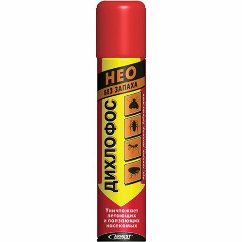 Как показывает практика, среди спреев от тараканов и других ползающих и летающих насекомых самым эффективным остается Дихлофос. Современные версии практически не имеют запаха, тем не менее являются токсичными для человека и животных (III класс токсичности). В качестве действующих веществ содержит следующие яды: перметрин, циперметрин, пиперонилбутоксид, тетраметрин, диэтилтолуамид, диметилсульфоксид. Спрей распыляется непосредственно на самих особей и их личинки или же в местах их обитания.