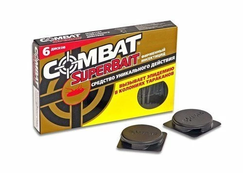 Действенное, безопасное и простое в применении средство от тараканов – диски, или так называемые ловушки для тараканов Комбат. Внутри диска имеется приманка, в состав которой входит действующее вещество гидраметилнон. Съев приманку, насекомое заражает других особей. По заявке производителя, через две недели после начала использования дисков, тараканы исчезнут. Срок действия средства – до трех месяцев.