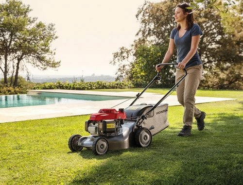 Эта хорошая бензиновая газонокосилка построена «вокруг» двигателя Honda GCVx 170 – можно сказать, классического уже силового агрегата для подобной техники. Его мощность при хорошем крутящем моменте хорошо подходит для самоходных косилок, даже при солидных размерах ножа – здесь ширина скашивания составляет 56 см.