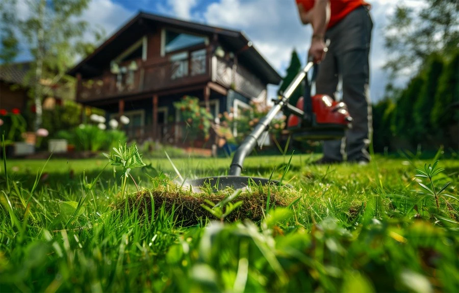 Справляется там, где ручной триммер говорит «я все», и в отличие от газонокосилок не боится кочек и камней.