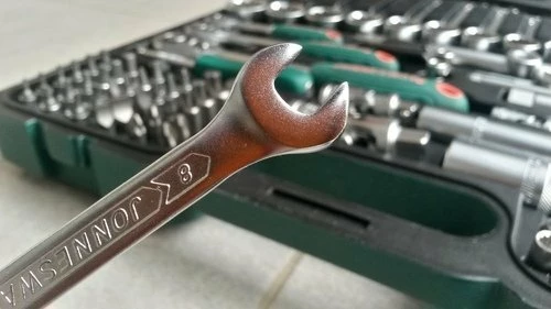 Минусы тоже есть: при хранении в сыром гараже или постоянно возя чемоданчик в багажнике, стоит все же предпочесть хромированный набор – меньше вероятность появления на инструменте налета ржавчины. С другой стороны, хром на постоянно работающем инструменте часто начинает облезать, а металл под отслоившимся покрытием начинает ржаветь еще быстрее. Здесь же хром использован только частично (ключи, часть поверхностей головок большого размера).