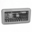 | Дополнительная информация | 1/2": трещотка с быстрым сбросом 48 зубцов; удлинители: 125, 250 мм; адаптер для удлинителя под вороток 3/8"(F)х1/2" (М); держатель для бит 1/2" DR х 5/16"; шарнир карданный; 1/4": трещотка с быстрым сбросом 48 зубцов; Т-образная рукоятка; удлинители 50, 100 мм; карданный шарнир; гибкий привод; отверточная рукоятка; переходник для бит |