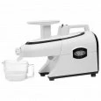 | Дополнительная информация | два фильтра; цифровой дисплей; резервуар для сока: стакан; материал сетки: нерж. сталь; максимальная скорость вращения: 80 об/мин; загрузочный лоток; щеточка для чистки |